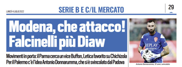 L'edizione odierna di Tuttosport si sofferma sulle trattative di mercato in serie B riportando anche l'interesse del Palermo per Donnarumma....