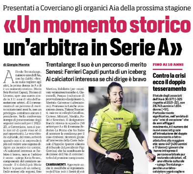 L'edizione odierna de "Il Corriere dello Sport" si sofferma sulla svolta storica in serie A con l'arrivo di un arbitro...