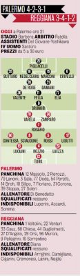 L'edizione odierna de "Il Corriere dello Sport" si sofferma sulle probabili formazioni di Palermo-Reggiana. PALERMO (4-2-3-1): 12 Massolo; 25 Buttaro...