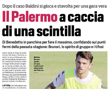 L'edizione odierna de "Il Corriere dello Sport" si sofferma sul Palermo a caccia di una scintilla. Probabilmente , sarà poco...