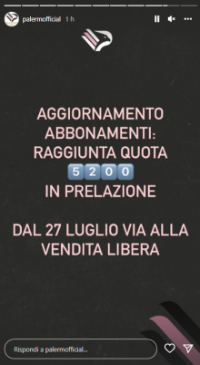 Come rende noto il Palermo sul proprio profilo Instagram è stata raggiunta quota 5.200 abbonamenti rinnovati in prelazione. Dal 27...