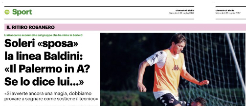 L'edizione odierna de "Il Giornale di Sicilia" si sofferma sulle parole rilasciate ieri in conferenza stampa da Soleri. Se Baldini...