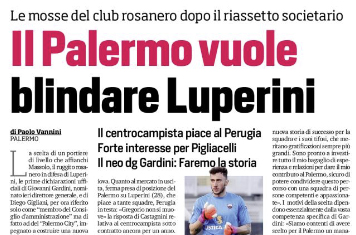 L'edizione odierna de "Il Corriere dello Sport" si sofferma sul mercato rosanero e sul futuro di Luperini. La scelta di...