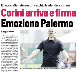 L'edizione odierna de "Il Corriere dello Sport" si sofferma sull'arrivo di Corini al Palermo. Annuncio ufficiale e arrivo in città....