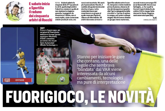 L'edizione odierna de "Il Corriere dello Sport" si sofferma sulla Fifa e sull'Uefa e le nuove regole del fuorigioco, Allora:...