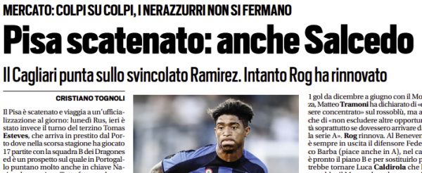L'edizione odierna di Tuttosport si sofferma sulle trattative del giorno in serie B. Il Pisa è scatenato e viaggia a...