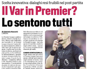 L'edizione odierna de "Il Corriere dello Sport" si sofferma sull'arrivo del Var in Premier League. La Premier League cambia e...