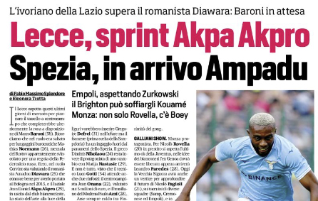 L'edizione odierna de "Il Corriere dello Sport" si sofferma sulle trattative del giorno in serie A. Il Lecce aspetta questi...
