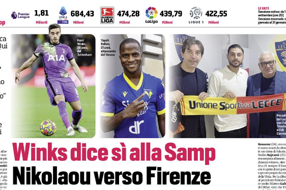 L'edizione odierna de "La Gazzetta dello Sport" si sofferma sulle trattative del giorno in serie B. Il vento del mercato...