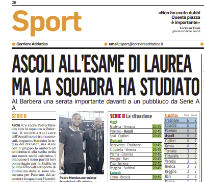 L'edizione odierna de "Il Corriere Adriatico" si sofferma sull'Ascoli che si prepara all'esame Barbera, questa sera contro il Palermo. C’è...