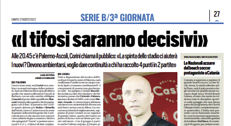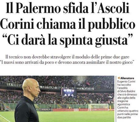 L'edizione odierna de "La Repubblica" si sofferma sul Palermo che sfida l'Ascoli riportando anche le parole di Corini. Da una...