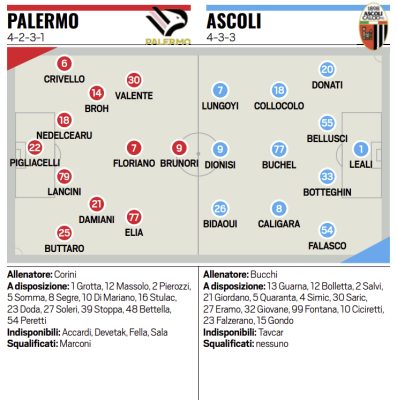 TuttoSport: “Palermo-Ascoli, le probabili formazioni”