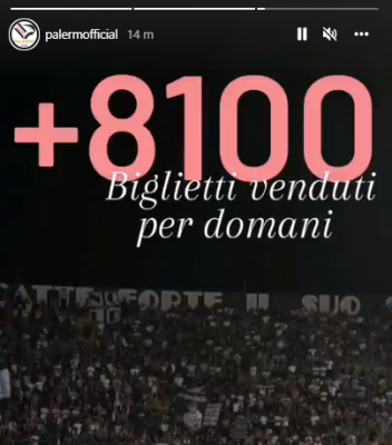 Attraverso le proprie storie Instagram il Palermo rende noto il dato aggiornato sui biglietti venduti. Sono ben 8.100 i tagliandi...