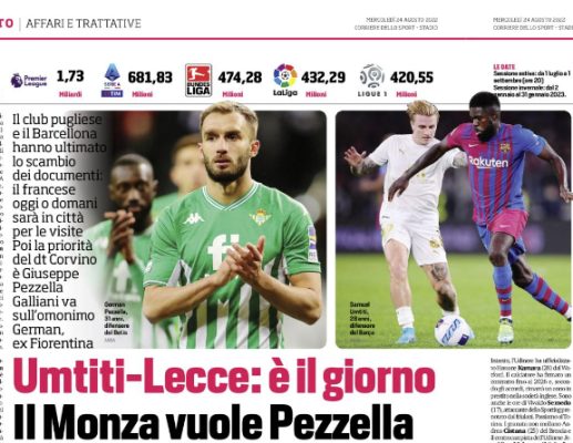 L'edizione odierna de "Il Corriere dello Sport" si sofferma sulle trattative del giorno in serie A. Ci siamo. Pantaleo Corvino...