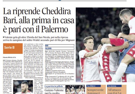L'edizione odierna de "Il Quotidiano di Puglia" si sofferma sul pareggio del Bari ieri contro il Palermo. Pareggio acciuffato a...