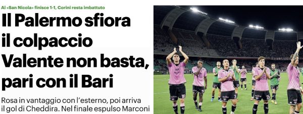 Corriere dello Sport: “Bari-Palermo, le pagelle”