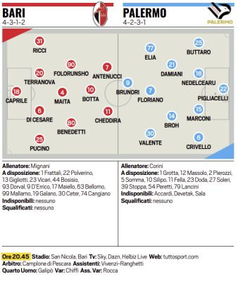 L'edizione odierna di Tuttosport si sofferma su Bari-Palermo e stila le probabili formazioni.