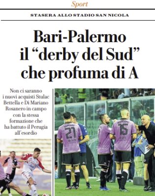L'edizione palermitana de "La Repubblica" si sofferma sulla gara di questa sera tra Bari e Palermo e la preparazione dei...