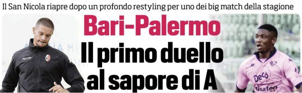 L'edizione odierna de "Il Corriere dello Sport" si sofferma sulla gara di questa sera tra Bari e Palermo con la...
