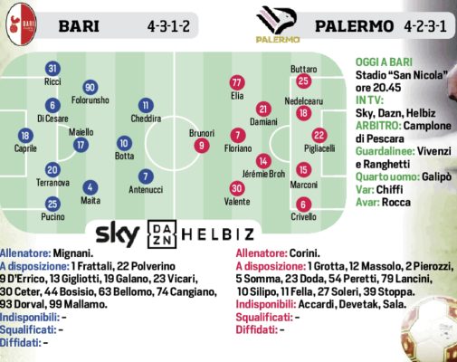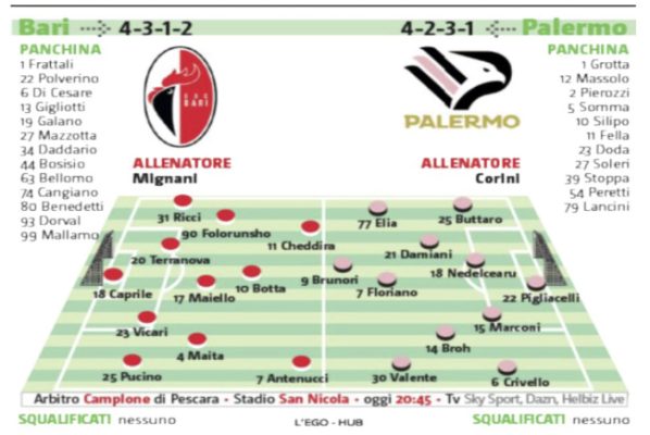 L'edizione odierna de "Il Giornale di Sicilia" ha stilato le probabili formazioni della gara di questa sera tra Bari e...