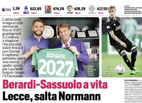 L'edizione odierna de "Il Corriere dello Sport" si sofferma sulle trattative del giorno in serie A. Ieri sera il Sassuolo...