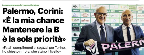 L'edizione odierna de "Il Giornale di Sicilia" si sofferma sulle parole di Corini rilasciate ieri in conferenza stampa. La precisione...