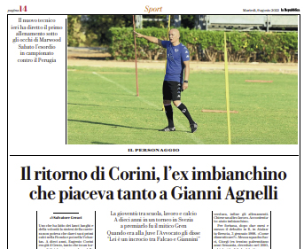 L'edizione odierna do Tuttosport si sofferma sulla carriera di Corini. Uno che ha fatto dei lanci lunghi e della volontà...