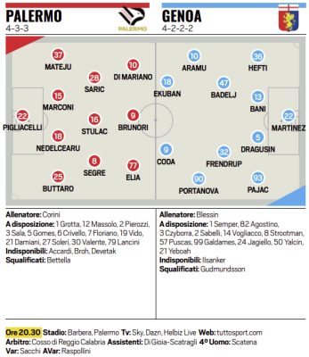 L'edizione odierna di Tuttosport ha stilato le probabili formazioni di Palermo-Genoa.