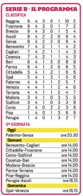 L'edizione odierna de "Il Corriere dello Sport" si sofferma sul programma della quinta giornata di serie B e la classifica...