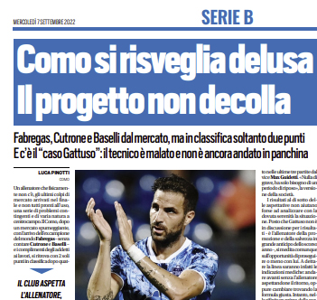 L'edizione odierna di Tuttosport si sofferma sul Como che si risveglia delusa per il progetto non decollato. Un allenatore che...