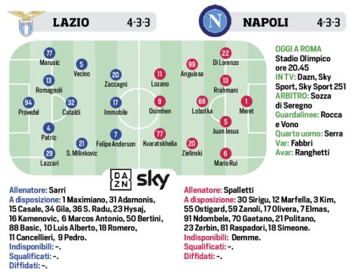 L'edizione odierna de "Il Corriere dello Sport" si sofferma sulle probabili formazioni di Lazio-Napoli in programma stasera.