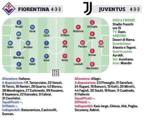 L'edizione odierna de "Il Corriere dello Sport" si sofferma sulle probabili formazioni del match di oggi tra Fiorentina e Juventus.