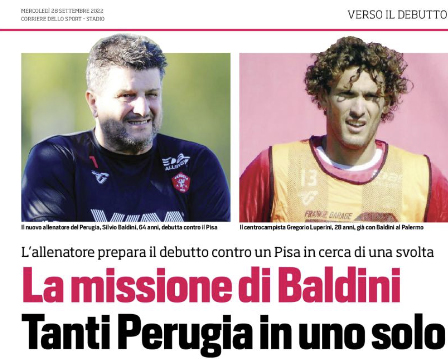 L'edizione odierna de "Il Corriere dello Sport" si sofferma sulla missione di Baldini al Perugia. Silvio Baldini "punta" sul 13,...
