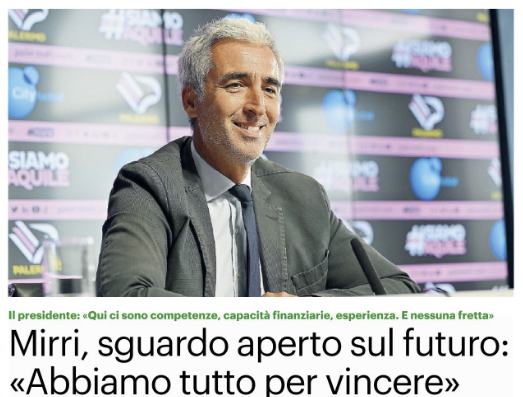 Palermo a Manchester, Mirri: «Soriano conosce Palermo meglio di tanti palermitani. Non vogliamo essere società meravigliosa di Zamparini»