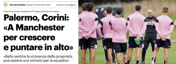 L'edizione odierna de "Il Giornale di Sicilia" si sofferma sul Palermo in ritiro a Manchester e le parole di Corini....