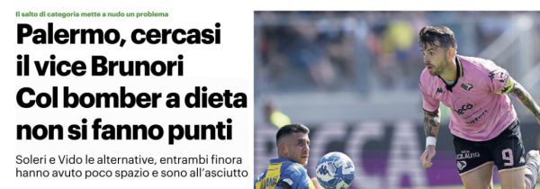 L'edizione odierna de "Il Giornale di Sicilia" si sofferma sui pochi gol di Brunori e la ricerca di un vice...
