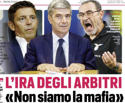 Corriere dello Sport: “L’ira degli arbitri: «Non siamo la mafia»”