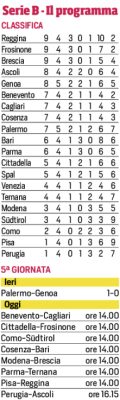 L'edizione odierna de "Il Corriere dello Sport" si sofferma sul programma di oggi in serie B e la classifica aggiornata.
