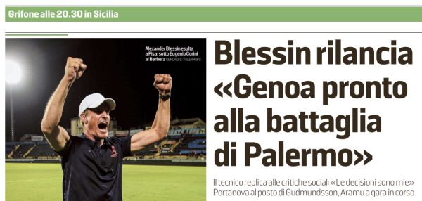 L'edizione odierna de "Il Secolo XIX" si sofferma sulle parole di Blessin in vista di Palermo-Genoa. La festa per il...