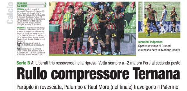L'edizione odierna de "Il Messaggero" si sofferma sulla gara vinta dalla Ternana contro il Palermo. Sarà pure prematuro. Sarà pure...