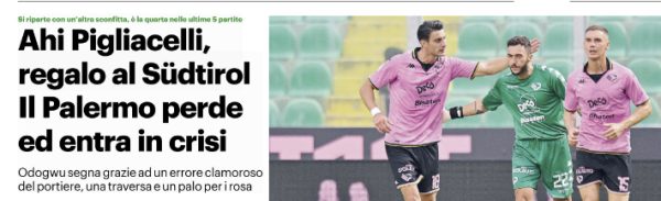 L'edizione odierna de "Il Giornale di Sicilia" si sofferma sulla gara persa dal Palermo contro il Südtirol. Ora tutto si...