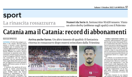 L'edizione odierna de "La Sicilia" si sofferma sul record abbonamenti registrato a Catania, superiore a quello del Palermo in D....
