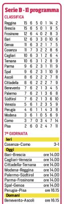 L'edizione odierna de "Il Corriere dello Sport" si sofferma sulla 7^ giornata del campionato di serie B. Sabato 1 Ottobre...