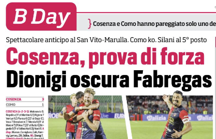 L'edizione odierna de "Il Corriere dello Sport" si sofferma sulla vittoria del Cosenza contro il Como. Torna alla vittoria il...