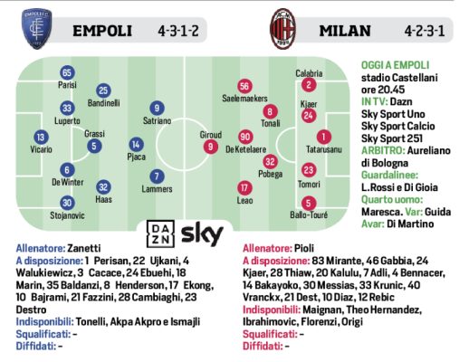 L’edizione odierna de “Il Corriere dello Sport” si sofferma sulle probabili formazioni di Empoli-Milan. I quattordici punti in sette partite...