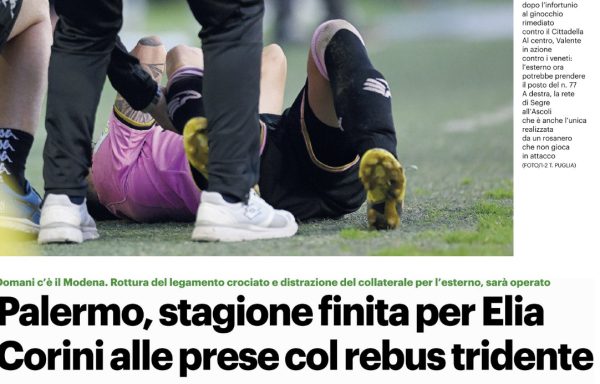 L'edizione odierna de "Il Giornale di Sicilia" si sofferma sull'infortunio di Elia che costringerà Corini a rivedere il tridente. Corini...