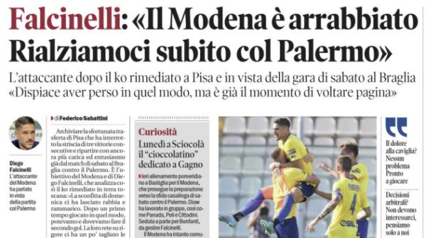 Gazzetta di Modena: “Falcinelli: «Siamo arrabbiati, rialziamoci subito col Palermo»”
