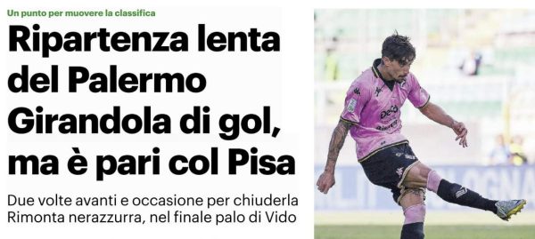 Repubblica: “Il pareggio con il Pisa. Tre gol non bastano il Palermo butta via il doppio vantaggio”