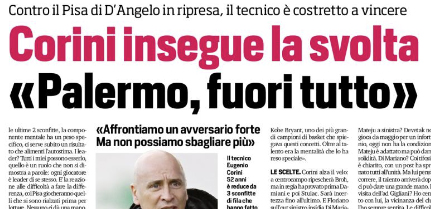 L'edizione odierna de "Il Giornale di Sicilia" si sofferma sulle parole di Corini in vista del match contro il Pisa...