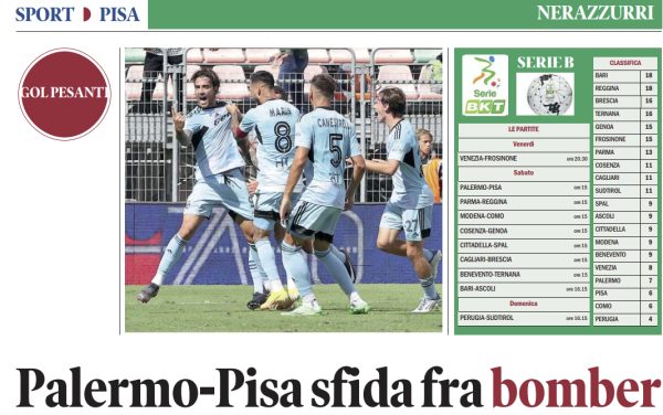 L'edizione odierna de "Il Tirreno" si sofferma sulla gara tra Palermo e Pisa in programma sabato. La via del gol...